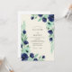 This design features a sophisticated palette of deep navy blue and refreshing mint green watercolor florals. Delicate anemones with dark centers are paired with soft seafoam blossoms and trailing sage green foliage. The botanical arrangement creates a graceful aesthetic against the creamy neutral background.