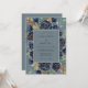 Deep navy blue blooms are artfully arranged with shimmering gold foliage against a sophisticated slate blue backdrop. This moody botanical design evokes a romantic atmosphere with rich watercolor textures and bronze-toned accents. Lush roses and delicate eucalyptus greenery provide a timeless aesthetic for a cold-weather seasonal event.