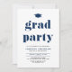 Famille Invitation et amis à votre graduation avec cette invitation personnalisable de grad party. Il présente une typographie bleu marine rétro audacieuse. Personnalisez cette invitation en noir et blanc en ajoutant les détails de votre événement. Cette invitation moderne à la remise des diplômes est disponible en d'autres couleurs et cartons.