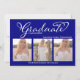 Invitation Navy Blue Script Photo Collage Graduation Card