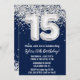 Invitation Navy Blue Silver 15e fête d'anniversaire