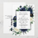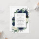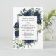 Invitation Navy Blue Silver Elegant Floral QR Code Wedding