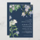 Invitation Navy blue watercolor wildflowers classic wedding
