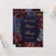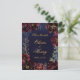 Une invitation de mariage bordeaux marine comportant une symphonie de pivoines bordeaux foncé ornées de pulvérisations dorées et de contours dorés scintillants rassemblés autour d'un fond de lavis aquarelle bleu marine avec vos noms en grands caractères dorés rustiques avec une police sans empattements majuscules annonçant vos coordonnées.