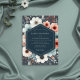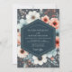 A captivating arrangement of deep navy hues mixed with soft peach and cream blossoms creates an elegant, romantic ambiance. The rich floral pattern evokes a sense of sophisticated charm, perfect for a memorable occasion. This design features a blend of soft petals and botanical foliage.