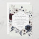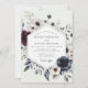 Experience a touch of dramatic romance with this elegant artistic design. Rich arrangements of navy blue and deep burgundy anemones are softened by delicate white blossoms. Painted in a soft watercolor style, dusty blue-grey foliage completes this sophisticated and moody floral composition for your special day.