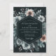 This design features a dramatic interplay of deep navy and muted blush blooms. Lush foliage and delicate flower clusters create a rich, romantic atmosphere. The dark, moody palette evokes a sophisticated and ethereal feel.