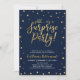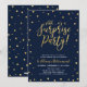 Célébrez votre jour spécial avec ce modèle d'invitation de fête surprise moderne et élégant. Ce design présente des confettis texturés dorés chic et de la calligraphie sur un fond marine.