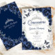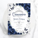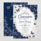 Navy silver and white Quinceanera celebration invitation. Features script font, silver butterflies, watercolor roses and tiara. Perfect for an elegant princess style glam celebration. Personalize with your own details. Printed Zazzle invitations or instant download digital printable template.