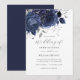 Invitation Navy Silver Floral Rose Wedding