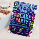 Neon Glow Retro Arcade Jeu Anniversaire Fête Invitation
