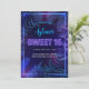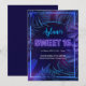 Invité Invitation pour célébrer votre ado à seize ans avec cette amusante Neon Glow Sweet 16 Anniversaire de fête Invitation. Le nom du célébrant figurait dans une élégante police calligraphique manuscrite entourée d'un feuillage tropical luxuriant encadre le texte modifiable. Des teintes de violet et de bleu turquoise donnent avec un cadre lumineux et un signe néon donne au design une lueur dans l'atmosphère sombre sous-marine et le style aquatique.