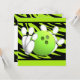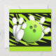 Célébrez les Anniversaires ou toute occasion amusante avec une partie de bowling. Customisez le texte sur cette amusante invitation de fête rayée verte et zèbre.
