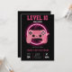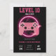 Neon Level 10 Unlocked video game birthday invitation featuring a glowing pink neon controller on a bold black background. A vibrant, modern design perfect for celebrating a gamer’s 10th birthday with an energetic, arcade style vibe.
