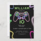 Invitation Neon level up 10 video Game Birthday Party
