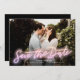 Ceci enregistre la date avec des lettres rose néon sur une photo horizontale. Ce modèle a également un design de support pour une photo supplémentaire en option et des détails comme votre site Web mariage. La couleur noire sur le dos peut être changée en n'importe quelle couleur que vous souhaitez dans la fenêtre de personnalisation ! Voir d'autres éléments de cette collection pour obtenir d'autres options de couleur et une version verticale.