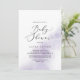Cette invitation au baby shower violet lavé à l'aquarelle est parfaite pour un baby shower moderne. Le design simple et classique présente une touche d'eau violette pastel lavande avec un style minimaliste et élégant.