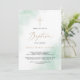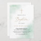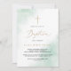 Cette invitation au baptême vert et or lavé à l'aquarelle est parfaite pour un baptême de bébé moderne. Le design simple et classique présente une touche d'eau verte à la sauge pastel avec un style minimaliste et élégant.