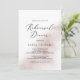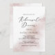 Cette invitation à dîner de répétition de lavage à l'aquarelle est parfaite pour une répétition mariage moderne. Le design sobre et classique présente une touche d'eau rose pastel avec un style minimaliste et élégant.