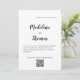 Cette faire-part de mariage présente un design minimaliste et élégant avec des couleurs noir et blanc. Les noms du couple sont affichés en bonne place dans une police de caractère, avec les détails de l'événement dans une police sans-serif en majuscules et propres ci-dessous. L'aménagement est centré sur un vaste espace blanc, créant un look épuré et moderne. Un code QR en bas permet aux clients d'accéder facilement aux détails RSVP et mariage, ajoutant une touche fonctionnelle à la conception simple mais sophistiquée.