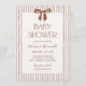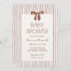 This neutral striped baby shower invitation pairs a brown watercolor bow with classic typography for a soft, elevated look.