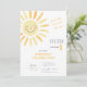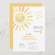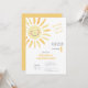 Faites de l'anniversaire de votre enfant un moment inoubliable grâce à cette invitation à thème moderne et ensoleillée. Le design présente une aquarelle illustrant un soleil jaune, sur un simple arrière - plan blanc qui le rend à la fois amusant et charmant, tandis que l'expression "Premier voyage autour du soleil" ajoute un élément ludique à la carte. Utilisez les outils de conception pour customiser le texte, les polices et les couleurs ! Aussi disponible en téléchargement numérique pour les évites.