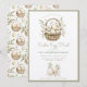 Invitez vos amis à une chasse aux œufs de Pâques ce printemps avec cette invitation élégante. Cette invitation comporte un panier d'œufs de Pâques à l'aquarelle avec des lis blancs. Le dos présente un motif général comportant un panier d'œufs de Pâques. Les couleurs utilisées incluent le vert olive, la crème et le marron. Tout le texte est modifiable pour répondre aux besoins de votre événement.