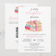 Celebrate a sweet new beginning with this charming two-sided book-themed baby shower invitation featuring a watercolor stack of books tied with a pink ribbon. The front highlights the “A New Chapter Begins” invitation details, while the reverse side includes a convenient QR code for the Book wish list. Hand-painted by Kristine Lee www.kristineleedesigns.com