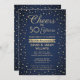 famille Invitation et amis à une fête d'anniversaire élégante avec des invitations personnalisées navy blue et or fête. Tout libellé sur ce modèle (y compris "Cheers to 50 Years") est mis en place pour un 50e anniversaire de mariage, mais est simple à personnaliser pour n'importe quelle année ou type d'événement. Le design comprend des points de confettis de la céramique moderne, une calligraphie stylisée et une typographie art déco vintage classique. Veuillez noter que l'or est imprimé en couleur et non en métal. Joyeux Anniversaire et applaudissements au couple pour leur célébration de jalon!