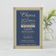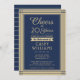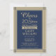 collègues Invitations, collègues, famille et amis à une élégante fête de retraite avec des invitations personnalisées navy blue et or party. Le libellé modèle "Cheers to 20 Years" est établi pour honorer vingt ans de service, mais est simple à customiser pour n'importe quel nombre. Le design se compose d'une bordure rayée moderne, d'une calligraphie de script élégante et d'une typographie d'art déco vintage classique. Veuillez noter que l'or est imprimé en couleur et non en métal. Son design neutre pour le genre convient aussi bien à un homme qu'à une femme. Bravo, félicitations et bonne retraite !