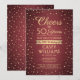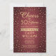 Famille Invitation et amis à une fête d'anniversaire élégante avec des invitations à la fête de bordeaux et d'or personnalisés. Tout le libellé de ce modèle (y compris "Cheers to 50 Years") est mis en place pour un 50ème anniversaire, mais est simple à personnaliser pour n'importe quelle année ou type d'événement. Le design comprend des points de confettis de la cire moderne sur un arrière - plan métallique en faux rouge foncé, une calligraphie de script élégante et une typographie vintage classique de l'art déco. Veuillez noter que l'or est imprimé en couleur et non en métal. Le design neutre pour les femmes convient aussi bien à un homme qu'à une femme. Bonjour et Joyeux anniversaire !