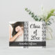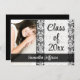 Invitations de diplômés, Design noir et blanc classique. Arrière - plan blanc avec motif vintage noir damassé. Ajoutez votre image principale, nom et texte personnalisé pour compléter ce look. Grand comme une faire-part de remise de diplômes ou une invitation à la fête de remise de diplômes.
