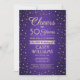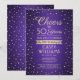 Famille Invitation et amis à une fête d'anniversaire élégante avec des invitations personnalisées violet et or. Tout le libellé de ce modèle (y compris "Cheers to 50 Years") est mis en place pour un 50ème anniversaire, mais est simple à personnaliser pour n'importe quelle année ou type d'événement. Le design comprend des points de confetti de citron moderne sur un arrière - plan métallique faux brossé, de la calligraphie de script élégant et de la typographie vintage classique art déco. Veuillez noter que l'or est imprimé en couleur et non en métal. Le design neutre pour les femmes convient aussi bien à un homme qu'à une femme. Bonjour et Joyeux anniversaire !