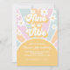Nine is a Vibe pastel Rétro Soleil invitation d'anniversaire 9 ans inspirée des années 70 avec des marguerites et des polices et couleurs bohèmes.