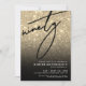 Celebrate in style with this elegant yet modern 90th Birthday Party Invitation, perfect for marking a milestone in chic fashion. The design features a faux gold glitter background with a smooth black gradient at the bottom that fades into the glitter for a dramatic, stylish finish. A large “Ninety” appears at the top left in a sleek serif font for a modern, elegant touch.