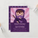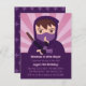 L'espionnage, l'infiltration et l'entraînement, les enfants sont-ils prêts pour le chemin du ninja ? Planifiez une fête d'anniversaire de ninja qui est unique et amusante en commençant par cette invitation à thème de ninja! Il présente un garçon ninja en tenue violette dans une pose avec une épée de katana sur le dos. Un arrière - plan d'éclatement. Un shuriken ninja star motif pour arrière - plan sur la page inverse. Personnalisez-vous facilement avec les détails de votre fête.