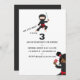 Invitation de fête d'anniversaire Kawaii japonais ninja avec un schéma de couleurs simpliste en noir et blanc personnalisable pour vos détails de l'événement.