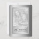 La carte d'invitation Noces d'argent 25 ans de mariage présente un fond argenté sur les deux faces souligné par une bordure métallique argentée tout aussi brillante, ainsi qu'un emplacement pour ajouter votre photo sur le devant. Idéal pour toute fête d'anniversaire de mariage d'argent [25e anniversaire de mariage]. © Morning 6