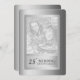 La carte d'invitation pour les 25 ans de mariage Silver Border présente un fond argenté des deux côtés souligné par une bordure métallique argentée tout aussi brillante, ainsi qu'un emplacement pour ajouter votre photo sur le devant. Idéal pour toute fête d'anniversaire de mariage d'argent [25e anniversaire de mariage]. © Morning 6