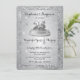 Élégant carton d'invitation plat pour les 25 ans d'anniversaire de mariage argenté sur un cadre pailleté argenté, avec un fond métallisé faux brossé. Les détails de la typographie de police décorative peuvent être entièrement personnalisés. Un design moderne chic avec une touche de glamour scintillant.