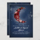 Cartons d'invitation de mariage et d'anniversaire de mariage céleste bleu marine et rouge bourgogne avec ciel nocturne étoilé et lune croissante florale romantique