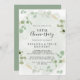 Cette invitation d'anniversaire de mariage de 50 ans avec eucalyptus et confettis dorés est parfaite pour un événement moderne. Le design présente un feuillage vert d'eucalyptus aquarelle avec des confettis dorés.