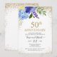Invitation Noces de mariage 50 ans or floral bleu violet
