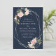 Invitation Noces de mariage à l'aquarelle en bleu marine et r