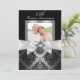 Invitation 25e anniversaire argent et noir. Élégant damassé argenté et nœud orné. Personnalisez avec vos propres détails. NOTEZ TOUTES les images plates ! Elles ne contiennent PAS de vrais nœuds ou bijoux !!