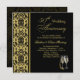 Invitation pour les noces de mariage de 50 ans avec un motif en damas noir sur fond or et deux verres à Champagne.