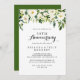 Cette invitation de noces de mariage greenery white floral 50 ans est parfaite pour un événement rustique. Le design présente d'élégants pivoines blanches aquarelles avec un feuillage vert. Changez le nombre pour célébrer n'importe quel anniversaire de mariage.