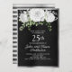 Invitation Noces de noir argent blanc floral 25 ans