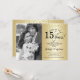 Carton d'invitation 15ème Anniversaire de Mariage avec Photo. Design élégant en or avec police de caractères script et confettis. Peut être personnalisé pour afficher n'importe quelle année de mariage. À 15 ans de mariage !
