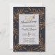 Invitez votre famille et vos amis à célébrer vos 50 ans de mariage avec ces invitations élégantes présentant des éléments floraux dorés sur fond sombre. Écriture dorée pour les 50 ans et détails dans une typographie moderne tendance.